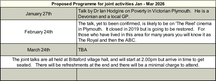 The groups meet in the afternoon of the fourth Tuesday of each month and may occasionally join together for indoor meetings during the winter when we may also have a speaker.